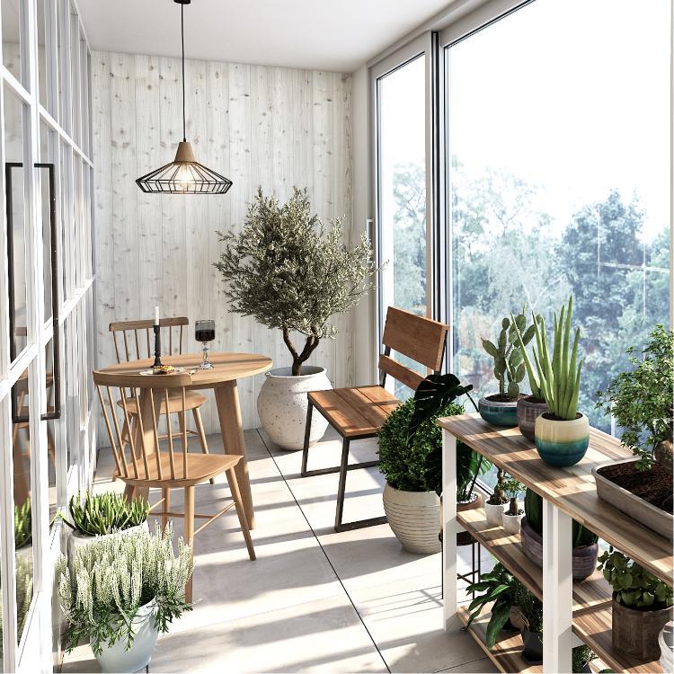 이곳은 우리 집 메인 공간인데요. 베란다 크기가 큰 편이라 테이블과 의자도 배치했어요. 특히 의자는 식물원의 느낌을 내기 위해 벤치 형식으로 골랐답니다!