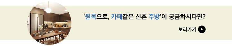 오래된 아파트의 경우 불필요한 공간이 있기 마련이죠. 위 주방 또한 다용도실 공간을 과감히 없애 효율적으로 넓게 쓰고 있는 주방 인테리어 입니다. 주방 공간 속 세탁기와 건조기도 함께 배치해 독특한 공간 구성과 함께 인테리어 효과도 돋보이는듯해요. 구조변경을 통해 넓어진 주방에서 가족을 바라보며 조리할 수 있는 대면형 주방!