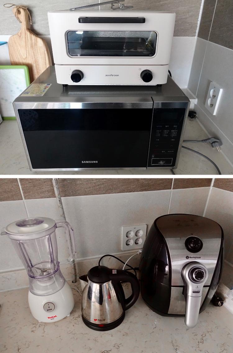 에어 프라이어, 믹서, 전기포트, 전자레인지, 미니오븐토스터가 있어요. 가장 유용하게 사용하는 제품은 아무래도 믹서에요.