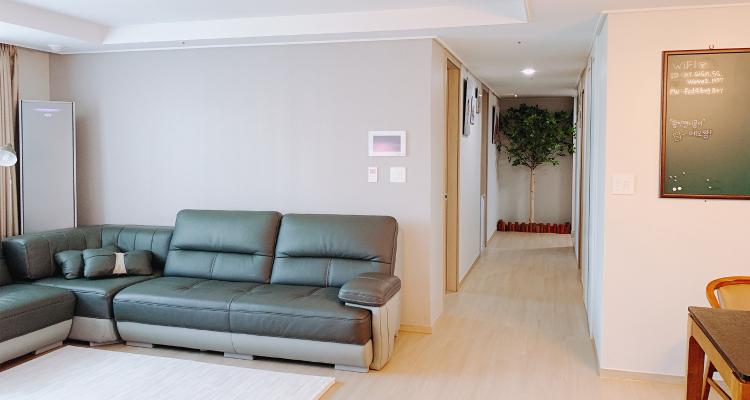 현관은 집에겐 첫인상이라고 생각해요. 현관에서 들어오는 입구에 있는 나무가 있어요~ 오른쪽 벽면엔 가족캐릭터 그림이 있어요. 행복한 우리 가족입니다~!
