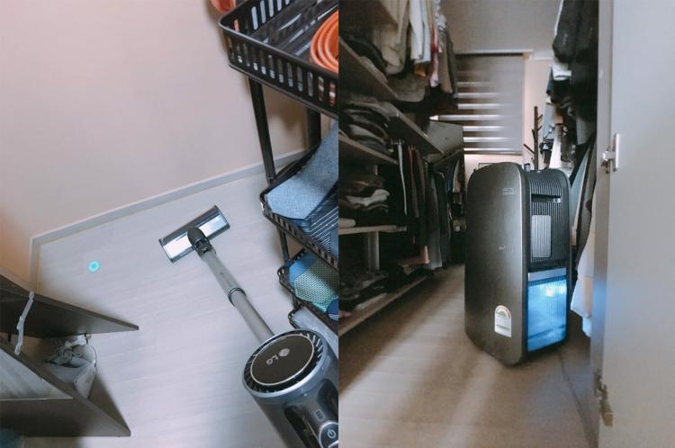 비가 오는 날과 습한 날에는 청소기로 열심히 해주고, 제습기 켜놓고 드레스룸 문을 닫으면 곰팡이가 생기지 않은 드레스룸이 완성됩니다~!