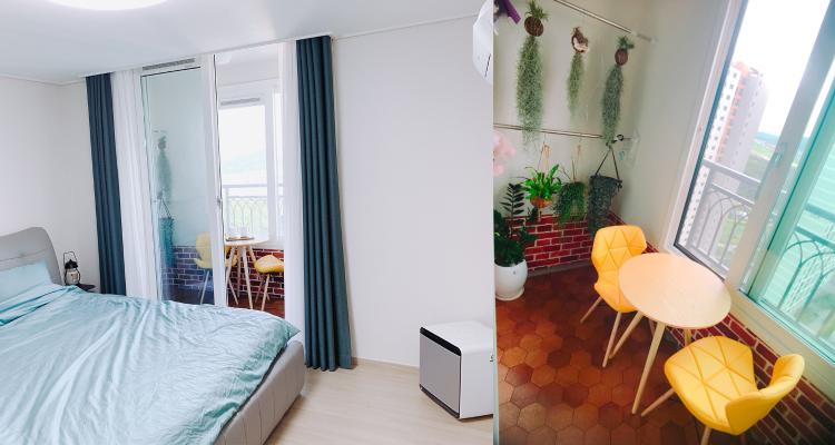 저희 부부의 침실이에요. 평소 티타임을 즐길 수 있는 곳 안방 베란다에 작은 카페 공간을 꾸며 놓았습니다.