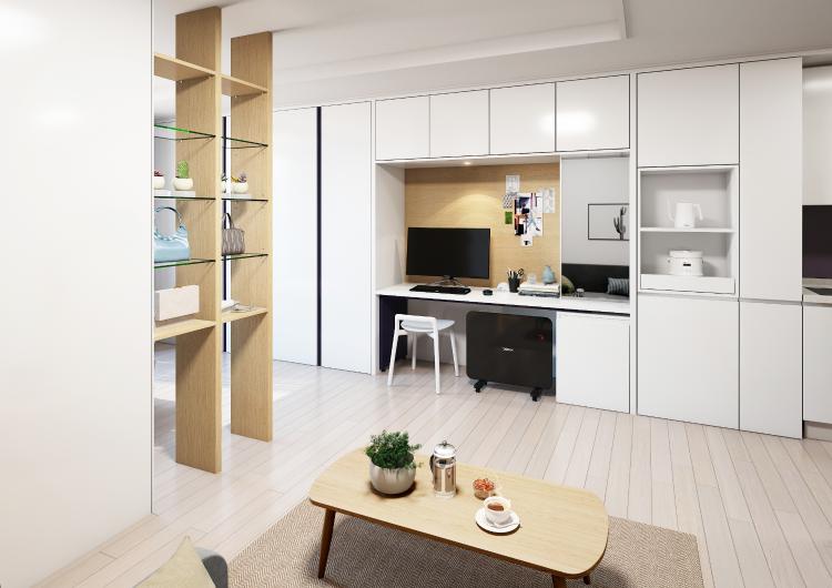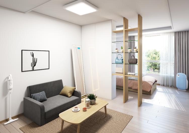 수납 선반을 활용해 공간 활용도를 높인 10평 원룸