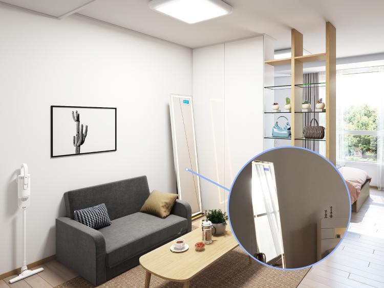 일반 거울과 똑같이 생긴 LED스탠드거울이 있어요. 사실 이 거울은 블루투스 스피커와 시계까지 가능하다는 점! 너무 신기했어요. 블루투스 스피커에 음악을 재생하고 소파에 앉아서 티타임을 즐기고 있어요.