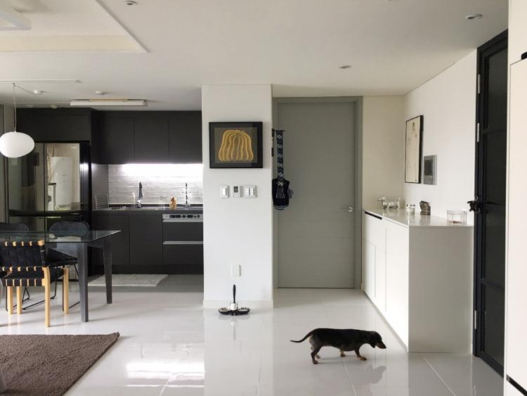 한편으로는 그 점이 저희 부부에게 이색적인 집 꾸미기를 할 수 있을 것 같아 매력적이었어요. 거실과 주방은 한 공간처럼 연결되어 가깝기에 공간 분리는 어렵지만 그만큼 동선이 짧은 게 장점이에요.
