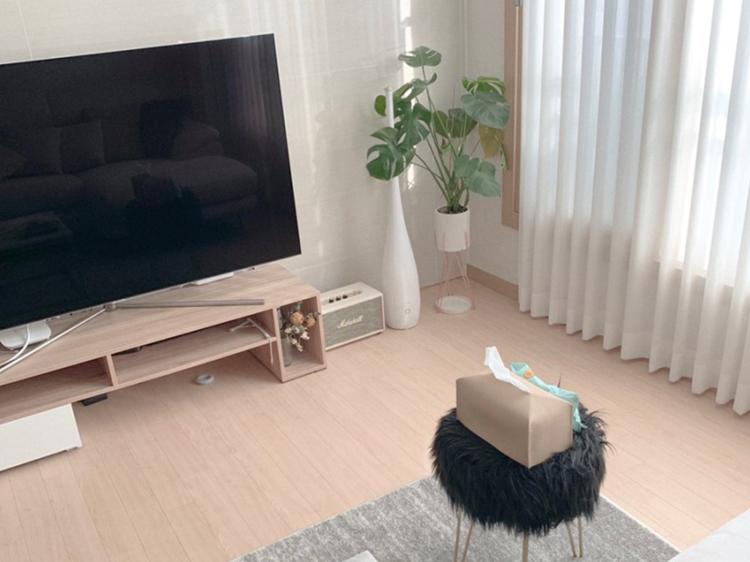 집이 25평이다 보니까 뭐 하나만 더 놓아도 집이 좁아 보이는 느낌이 들게 되어라고요. 그래서 전체적으로 밝게 미색으로 싹 정돈하려고 애쓰고 플랜 테리어 하는 식물에만 원색 포인트를 줬어요