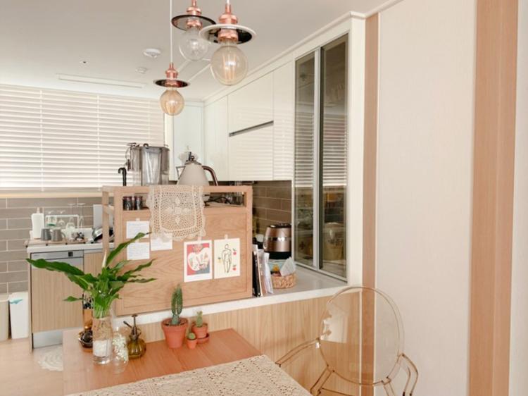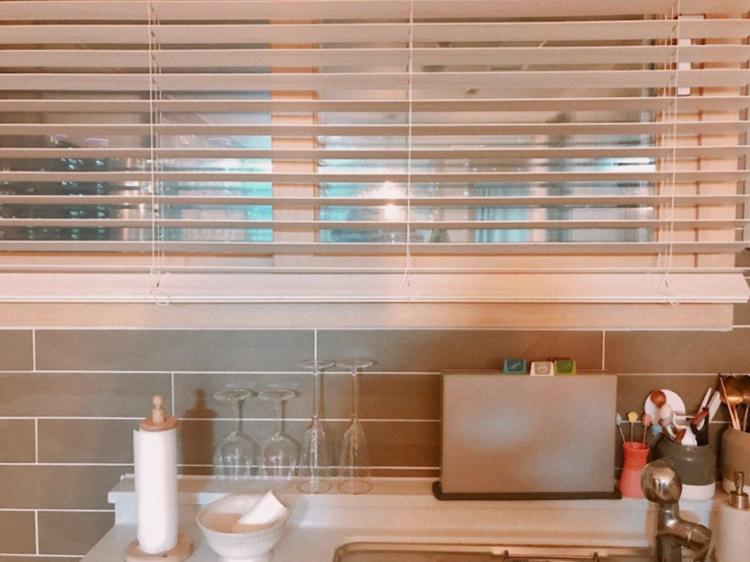부엌엔 일부러 커튼을 안다는 신혼집도 많던데 저는 그냥 원목 블라인드를 달았어요. 블라인드 대가 뉠 때랑 가려질 때 부엌의 느낌이 또 달라지네요.