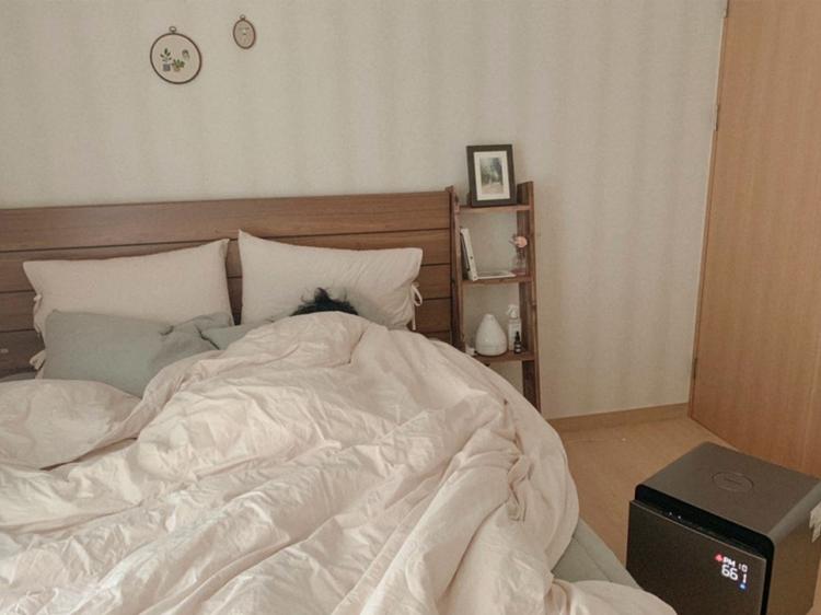 미세먼지가 많은 요즘, 환기시켜줬다 문 닫고 켜면 엄청난 수치에 놀라네요. 그래도 가습기 켜고 아로마 오일 한 방울, 침대 속 만큼 좋은 게 없어요.
