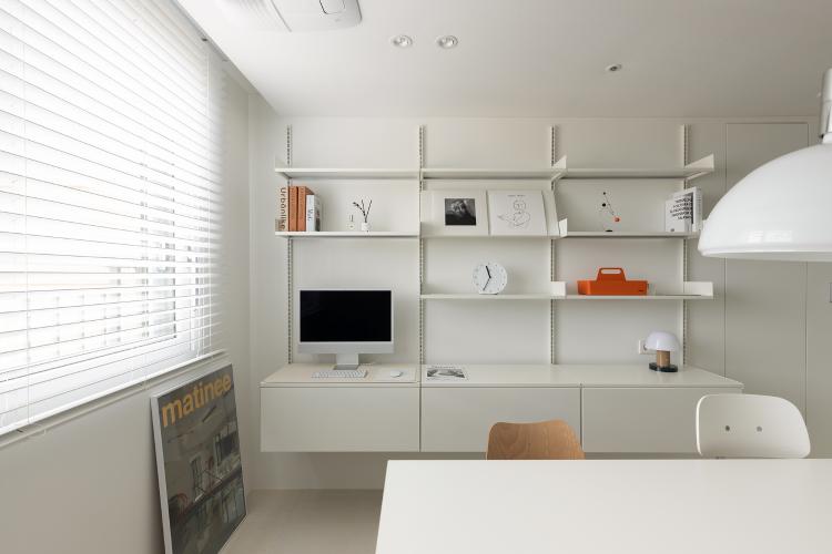 서재 공간은 벽을 철거하여 오픈된 공간을 만들고자 했어요.하지만 공간 분리는 해야할 것 같아 유리로 슬라이딩 문을 만들었어요.