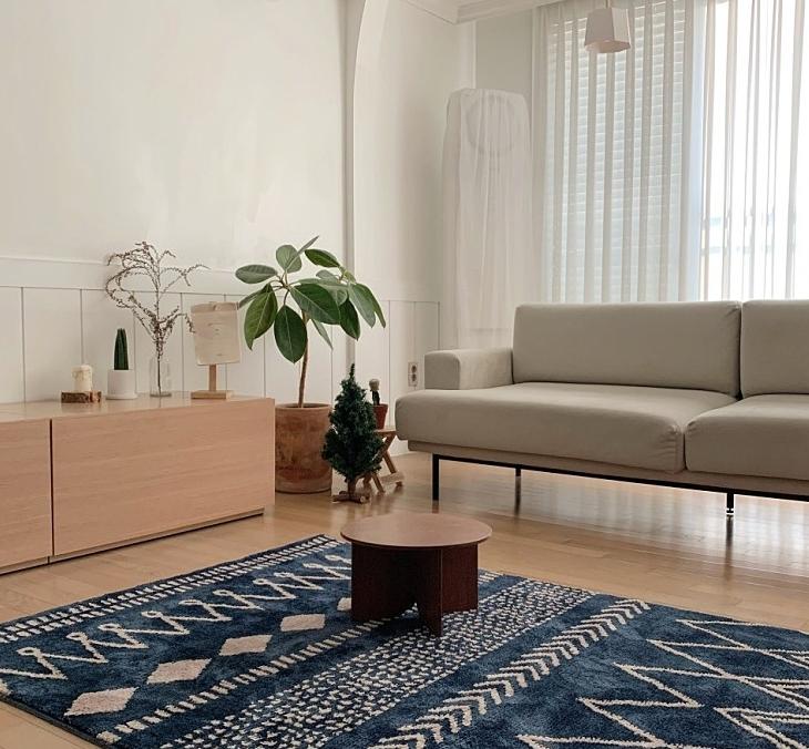 원목과 파란 러그도 참 잘 어울리죠. 봄이 오고 있어서 지금은 러그를 걷어냈어요.