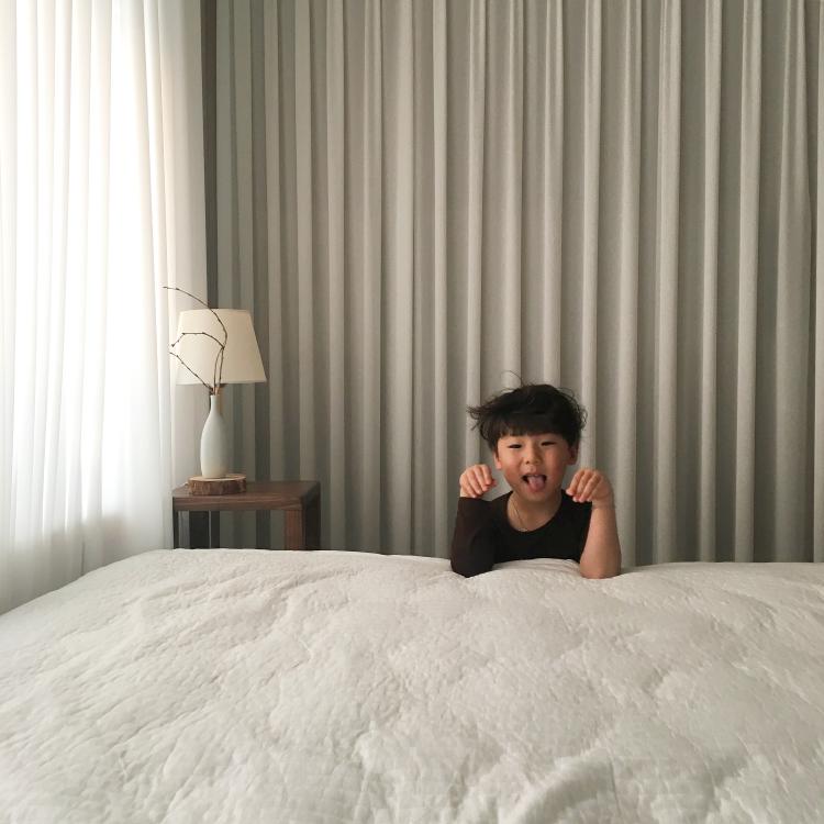 아이들 방도 붙박이장이 있어서 안방과 똑같이 커튼으로 가려주었어요. 훨씬 깔끔하고 예뻐 보이는 것 같아요.