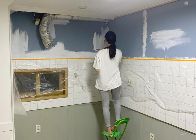 어머님이 이사 가시고 그 집에 저희가 바로 들어가는 거여서 고민이 많았어요. 올 수리는 돈도 많이 들고 그리고 저희가 살고 있기 때문에 어려울 것 같아서 고민 끝에 페인트를 칠하기로 결정했어요.