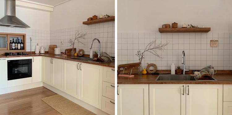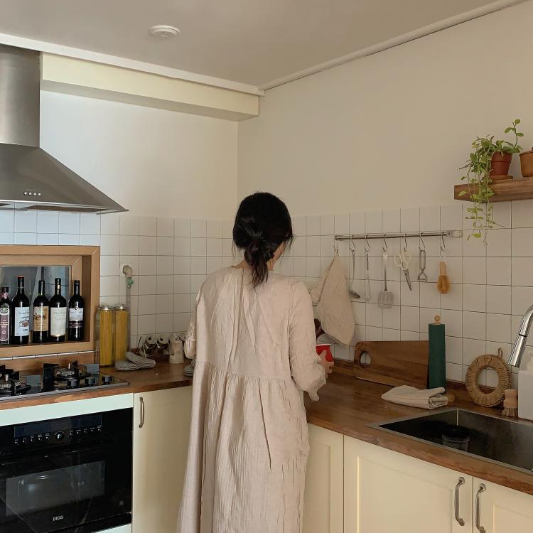상부장이 있다가 없으니까 수납에 대해 궁금해하시는 분들이 계셨는데 저는 그릇이 그렇게 많지 않았고, 충분히 하부장으로도 수납이 가능하더라고요. 대신 락앤락 같은 반찬통들은 주방 뒤 베란다로 다 빼놨어요 :)