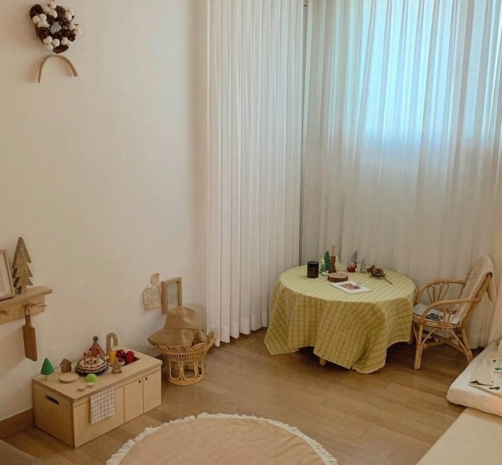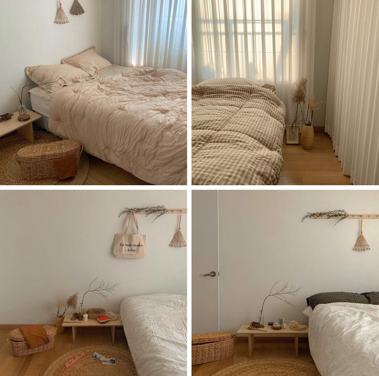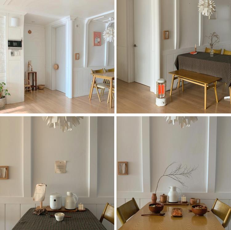 너무 예쁘죠. 저는 원목과 라탄 계열을 좋아해서 소품과 가구 느낌들이 모두 비슷해요. 원목은 따스한 분위기를 만들어주는 장점이 있는 것 같아요.