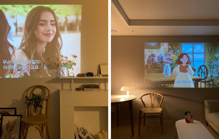 영화관 하면 큰 화면과 웅장한 사운드, 맛있는 간식이 떠오르는데요. 집에서도 빔프로젝터를 활용해 몰입감 있는 영화관의 느낌을 구현할 수 있어요.