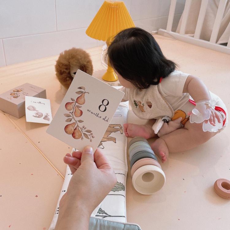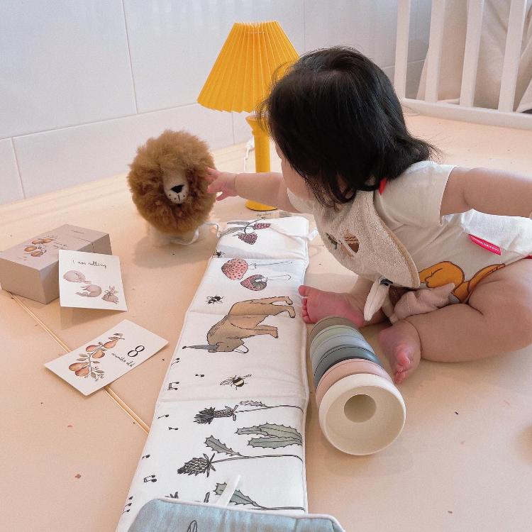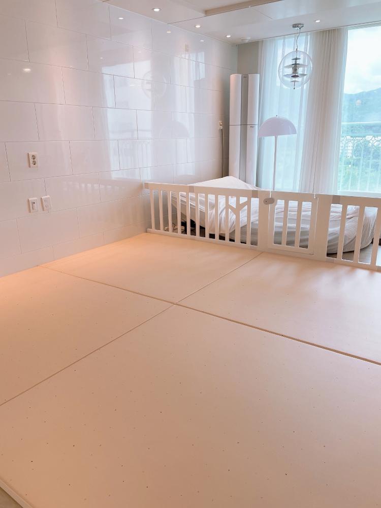 너무 예쁘고 아가를 위한 친환경적 소재라 거실에 쁘띠메종 그만매트로 놀이존을 만들었어요. 약간 유럽 감성 베이비룸을 만들고 싶었달까 ..