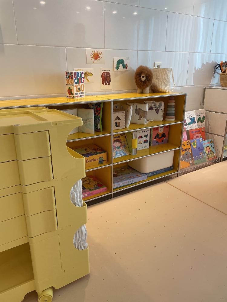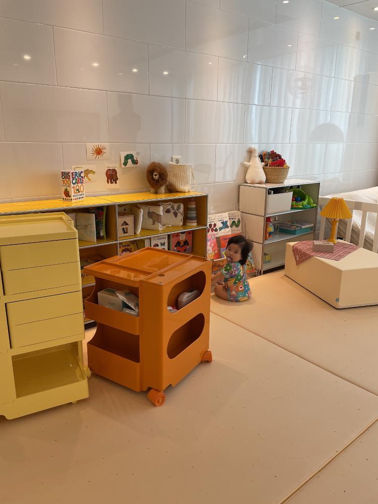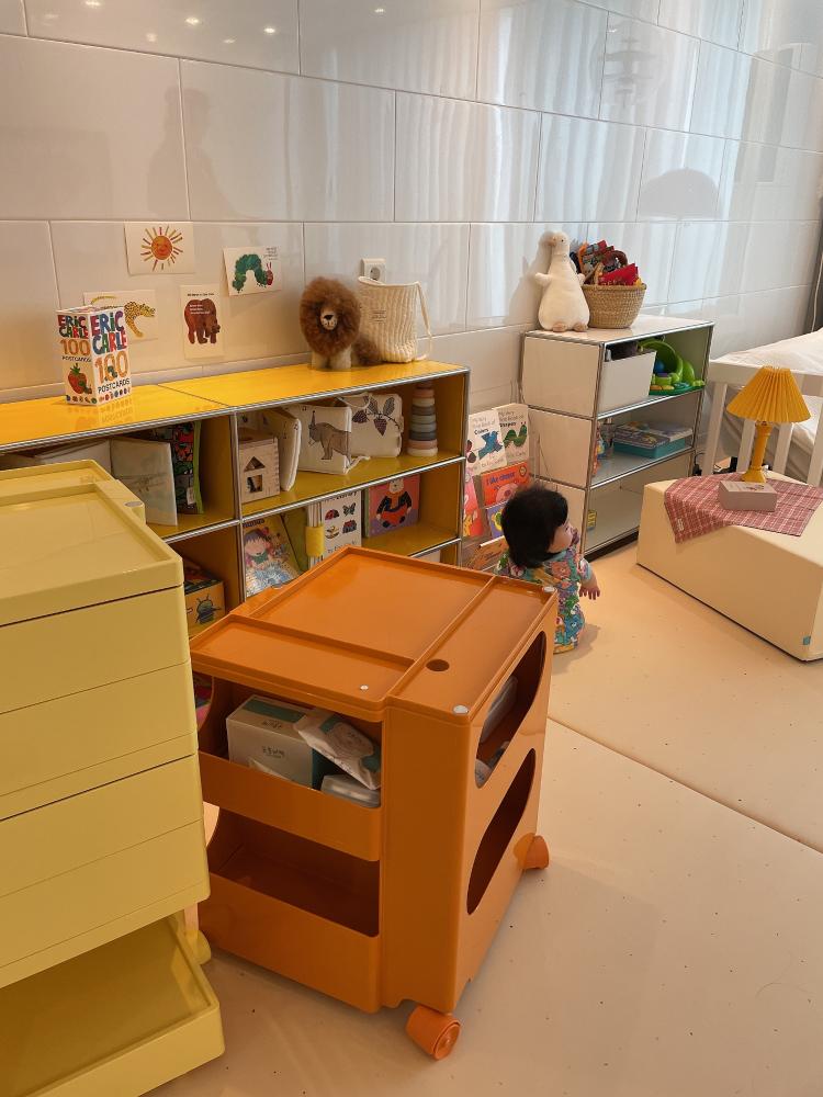 아기의 일상에 리듬을 주는 색감의 교구장을 들였어요. 뻔하지않고 특이하지만 촌스럽지 않은 컬러들이에요.