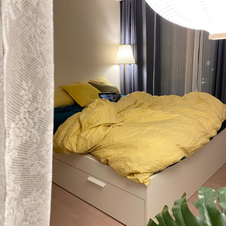 침실을 좀 더 머물고 싶은 공간으로 만들고 싶어 침실에 배치를 바꾸며 지내고 있어요. 침실에서 혼자만의 시간을 보내기도 하고, 빔으로 분위기를 더 해보기도 하며 바뀌는 분위기를 즐기고 있답니다.