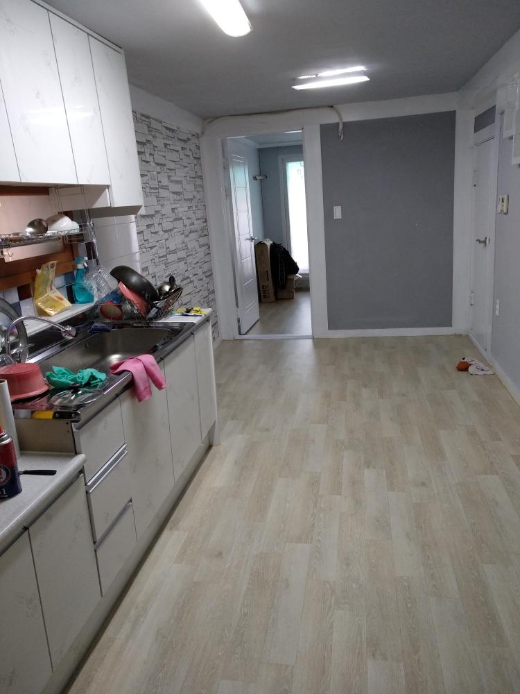 다이닝룸은 그저 그런 안방의 모습이었어요. 좁은 주방에 큰 양문형 냉장고를 넣지 않고 다이닝룸에 두었어요. 다이닝룸에서 밥도 먹고 술도 편하게 꺼내 먹어요. 사진은 아직 완성 전 사진이라 냉장고가 보이지 않네요!