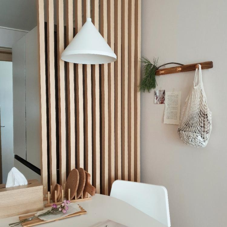 별도 타공 없이 설치하는 나사 조임 방식으로, 너무나 손쉽게 간편하게 얻을 수 있는 따뜻한 공간의 가구 소품, 우드 레이 원목 파티션. 추천합니다.