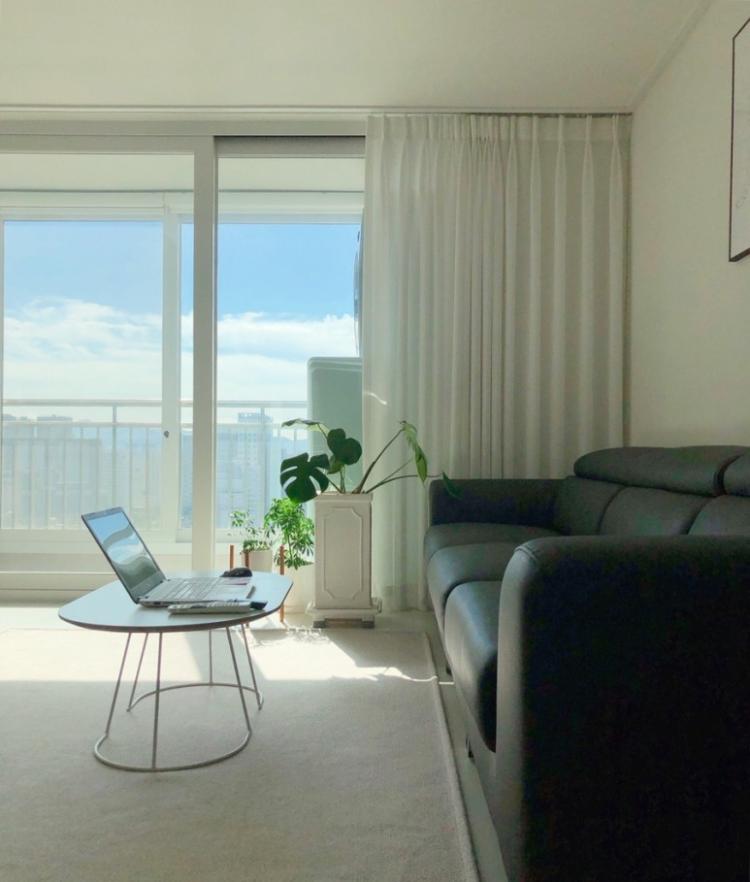 저희 집 거실이 동남쪽이라 날씨 화창한 오전에는 거실 깊숙이 햇살이 들어오는데요. 하늘까지 맑은 날에는 기분 좋은 오전을 보내고 있답니다. 몸도 기분도 나른해지는 뷰 -