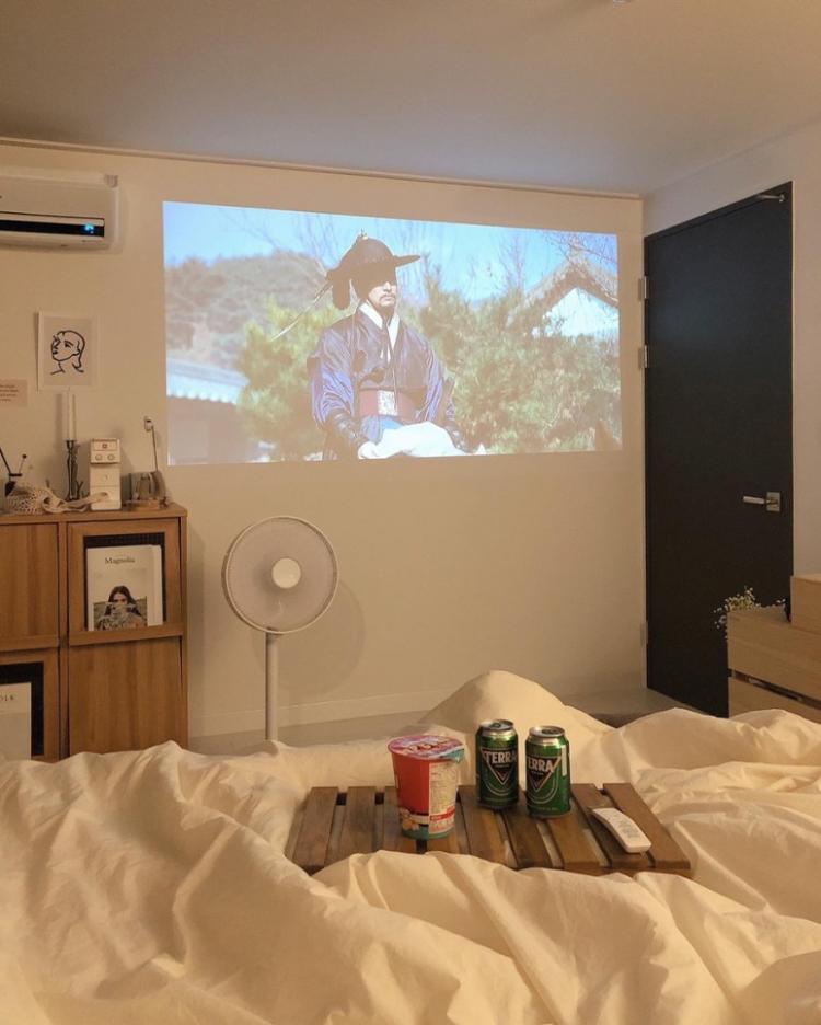 가끔 분위기 있게 영화도 보려고 빔 프로젝터까지 구매했답니다. 넘넘 맘에 드는 빔!!! 마치 영화관 온 것 같은 우리 집 미니 시네마
