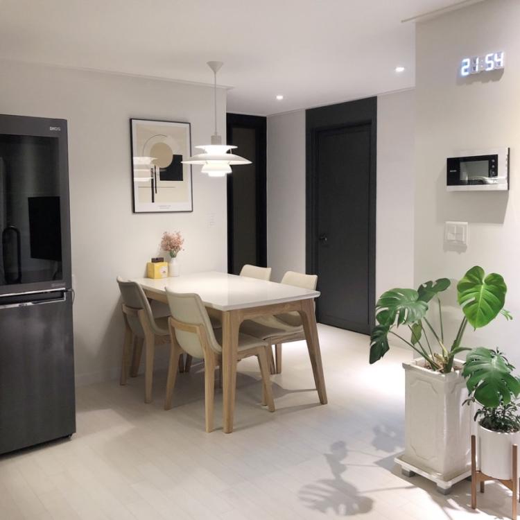 딱 제가 원하는 화이트 느낌에 조명까지! 전과 비교하면 너무나 달라졌죠? 최대한 넓어 보이게 화이트톤으로 통일하게 꾸며주었어요.