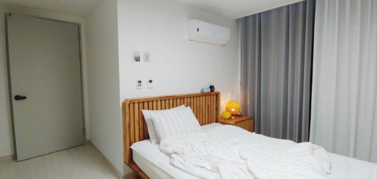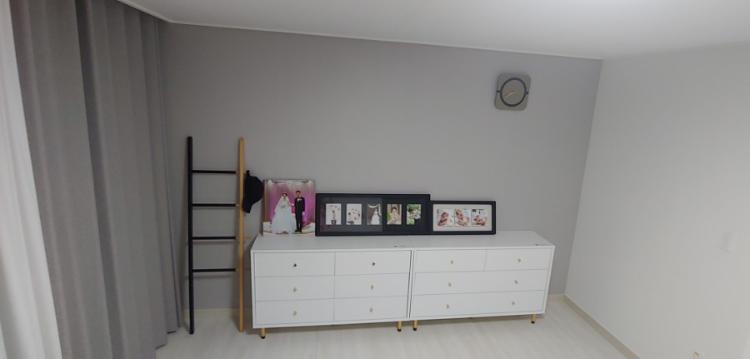 이번엔 안방이에요.. 안방은 큰 공사 없이 도배만 새로 했어요~ 포인트 도배지 고르는데 정말 많은 고민을 했는데 진그레이 진짜 너무 이뻐요~! 너무 진할까 봐 걱정했는데 웬걸 도배하고 나니 딱 원하는 색감이더라고요~! 야간 하는 신랑을 위해 암막 커튼도 설치했습니다. 커튼은 진심 실물 깡패에요 사진으로는 이쁨이 다 안 담긴다는~