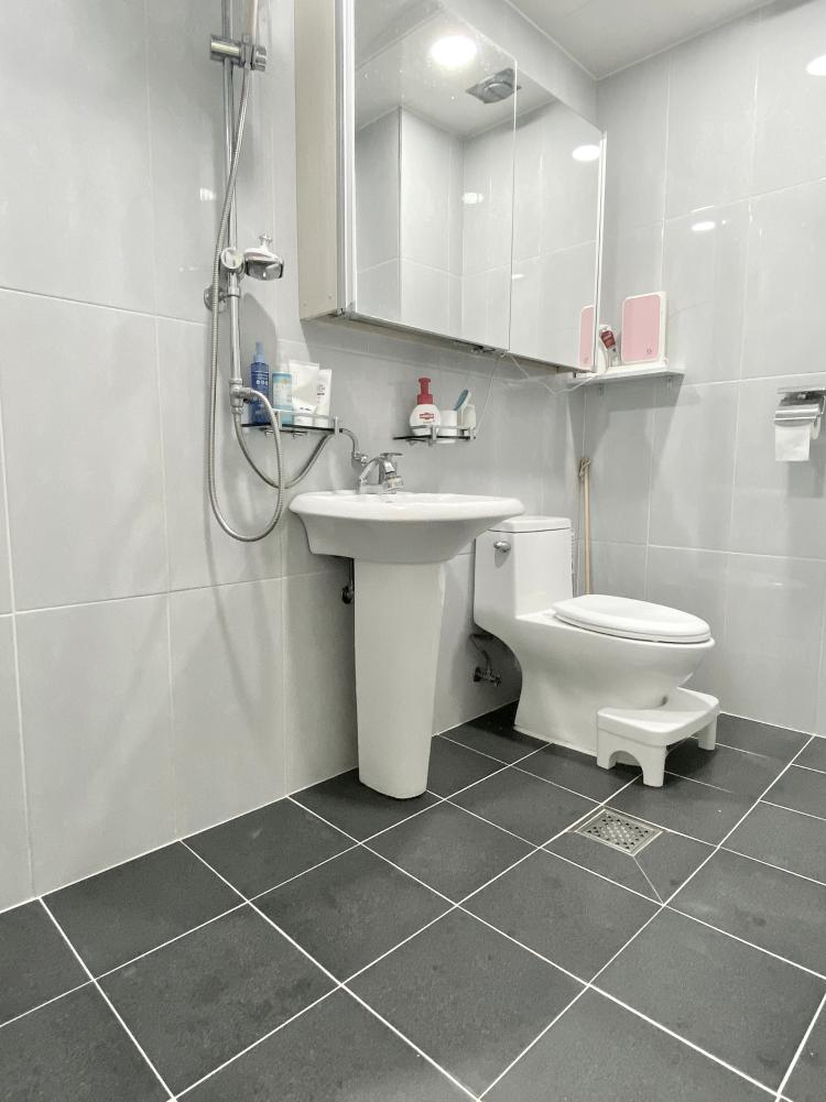 화장실은 투룸이지만 크게 나온 편입니다. 타일이 쏙 마음에 들지는 않지만 바꿀 수는 없기에 그냥 만족하면서 살고 있어요. 화장실은 특별한 것은 없고, 최대한 깔끔하게 유지하면서 지내려고 샤워하면서 자주 청소를 하고 있어요.