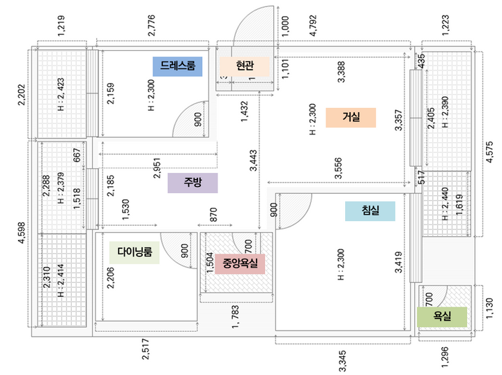 위 도면은 저희 부부가 직접 실측한 후 남편이 직접 그린 도면입니다. 공정마다 시공하시는 분들을 만날 때 저희 집 실측 자료를 드려야 했고 또 한 가구 구매할 때도 공간의 크기를 알아야 저희 집에 어울리는 가구를 구입할 수 있었기 때문에 꼭 필요한 작업이었어요.