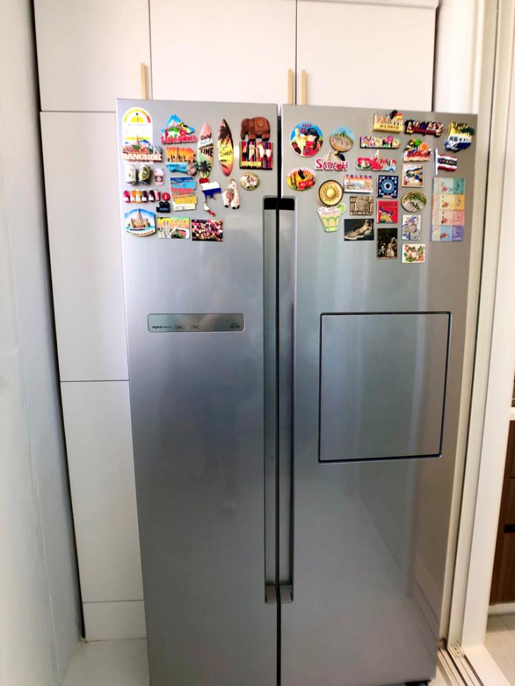냉장고장은 기존 것을 그대로 사용하고 있어요. 그 대신 수납장 문이 없어서 목공작업 때 문을 따로 만들고 필름 작업 그리고 손잡이까지 교체해 주었어요. 수납공간이 부족하다 보니 냉장고장이 있어서 식료품 수납을 할 수 있어서 좋아요.