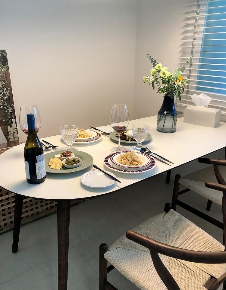 코로나 때문에 미뤄뒀던 집들이를 했어요. 친한 친구 불러서 같이 와인 마시며 수다 떠는 행복이란,,, 시간 가는 줄 모르고 즐거운 시간을 보냈죠. 그리고 다이닝 룸 옆쪽에는 제가 좋아하는 바우하우스 포스터를 걸어놨어요.