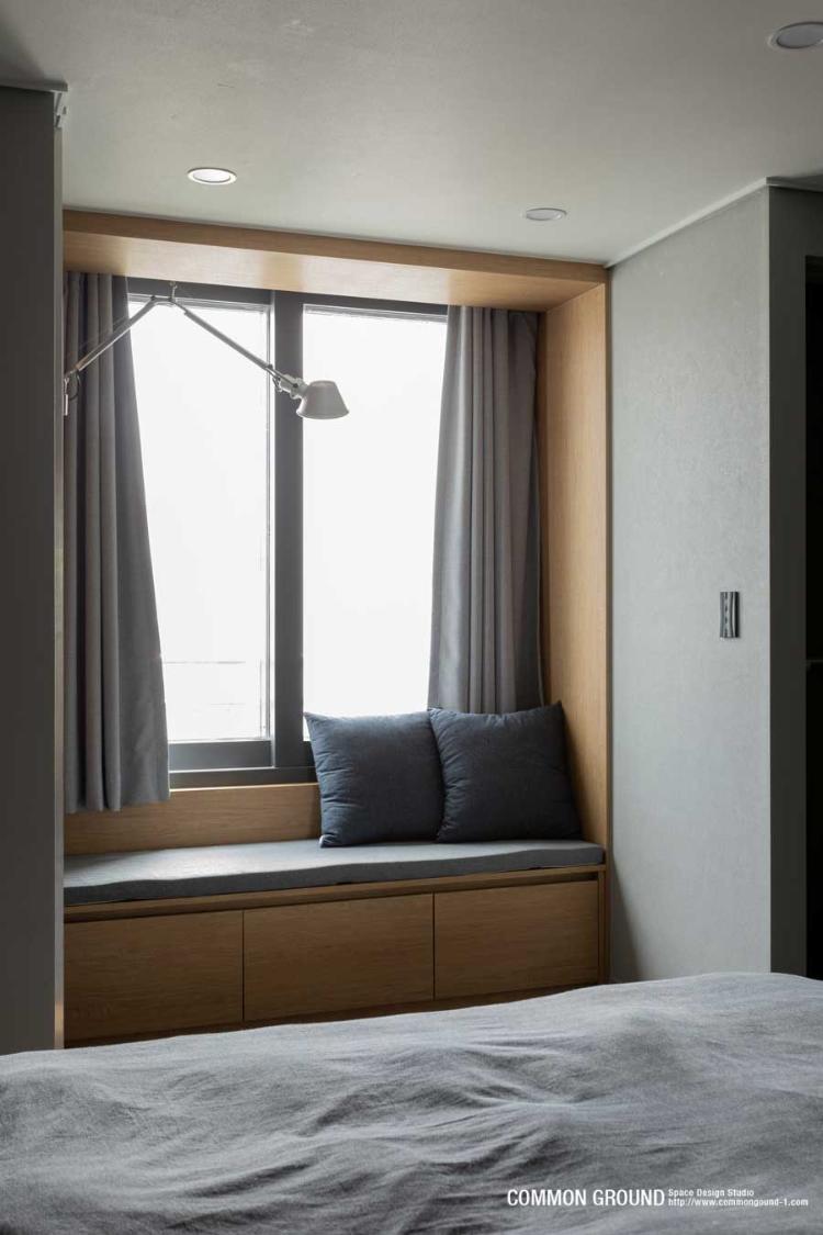 발코니를 확장하여 데이베드를 만들었습니다. 조용히 쉬거나 독서를 하기에 딱인 공간인 것 같아요 :) 거실은 시크하고 모던한 분위기였다면 편안한 휴식을 위한 공간인 침실은 전체적으로 아늑하고 부드럽게 느껴집니다.