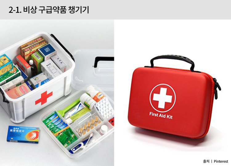 야외에서 즐기는 캠핑은 언제 어떤 상황이 발생할지 알 수 없기 때문에 비상 구급약품은 필수입니다.