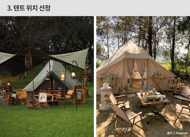 세 번째로 알려드릴 팁은 텐트 위치 선정 방법입니다.