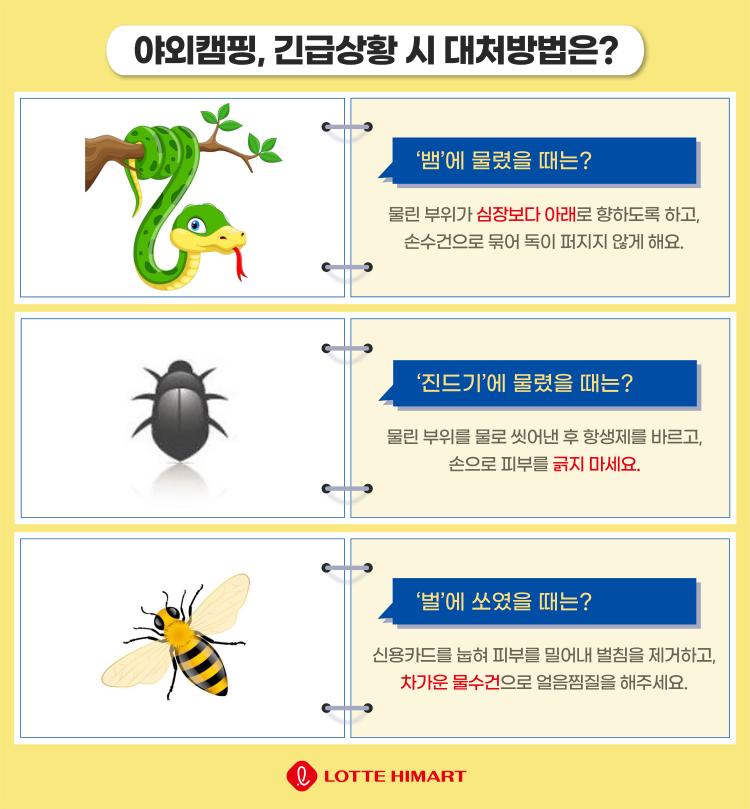 캠핑을 떠나기 전 대처 방법을 미리 숙지하여 2차 감염을 예방해 봅시다!