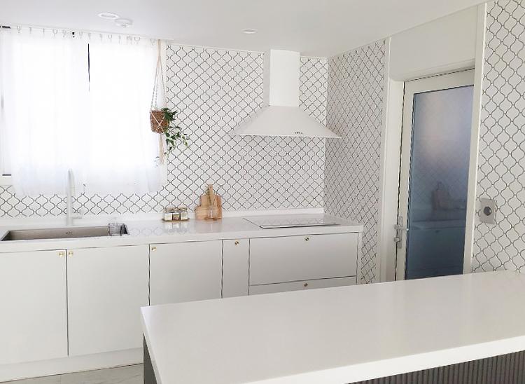 확실히 상부장이 없으니 너무나 깔끔하고 환해 보여요. 아까 말씀드린 템바 보드로 아일랜드 장에 포인트 주었어요.
