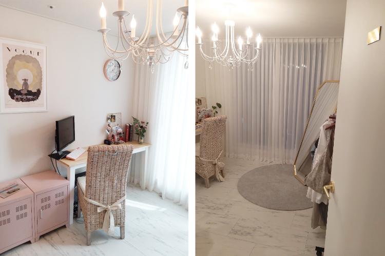 그래서 그런지 핑크 벽지와 너무 잘 어울려요^^ 살짝 로코코 느낌으로 하고 싶었는데 느낌을 잘 살린 거 같아요.
