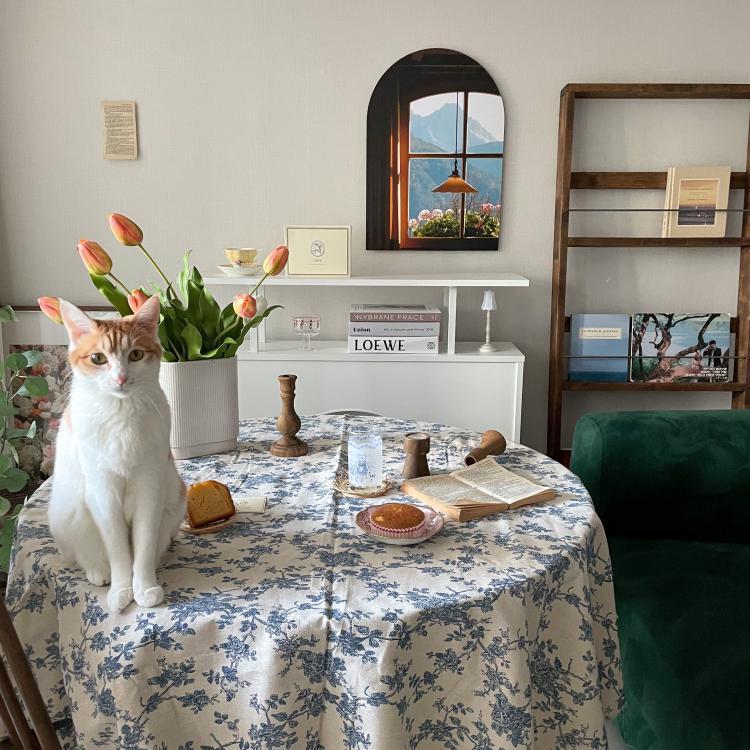 자신의 취향이 담긴 디자인의 테이블보를 활용해 기존 식탁을 덮는다면 새로운 가구를 들인 듯한 기분을 낼 수 있어요.