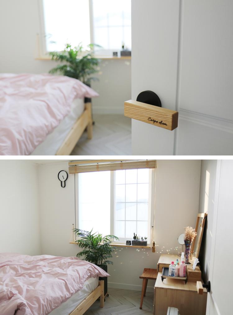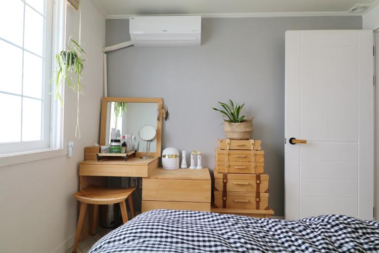 부부 침실은 잠만 자는 작은 방이라 화장대와 침대로 미니멀하게 구성했어요. 침구교체로 분위기가 좌우되는 공간이랍니다.
