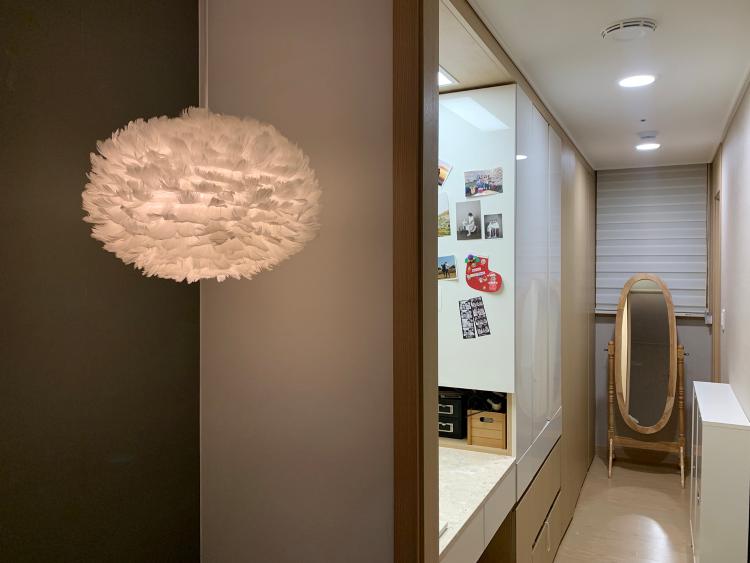밤이 되면 메인등을 끄고 펜던트 등만 켜놓고 있어요. 누워서 저 깃털 조명을 바라보고 있으면 마음이 포근해 진다고 해야 할까? 분위기가 너무 좋아요.
