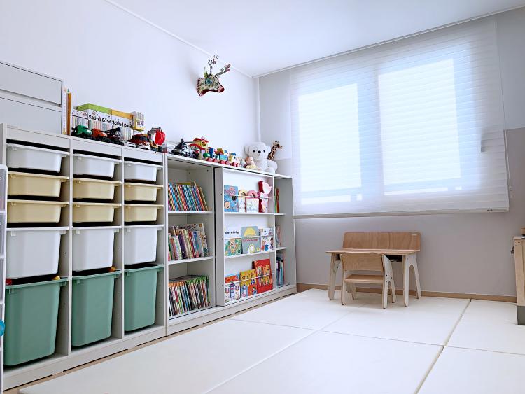 아이 놀이방은 스스로 장난감과 책을 가지고 놀고 볼 수 있도록 배치 했어요. 4살이 되니 장난감이 점점 많아져 슬라이딩 수납장을 이번에 구입했어요. 아이가 충분히 넣고 빼고 잘 해서 편하더라고요.