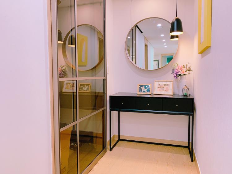 수납장에는 요즘 매일 쓰고 있는 마스크를 보관하고 있어요. 현관 앞에 수납장과 거울이 있으면 매일 가지고 나가야 하는 것들을 챙기고 얼굴도 챙길 수가 있습니다^^