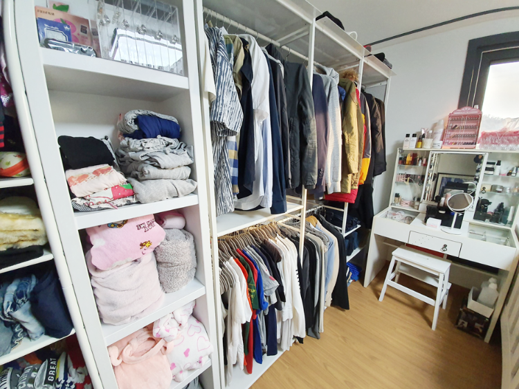 1인 드레스룸으로 쓰기 딱 좋은 사이즈의 방인데, 저는 K 군과 함께 드레스룸을 쓰니까... 턱도 없는 사이즈죠.
