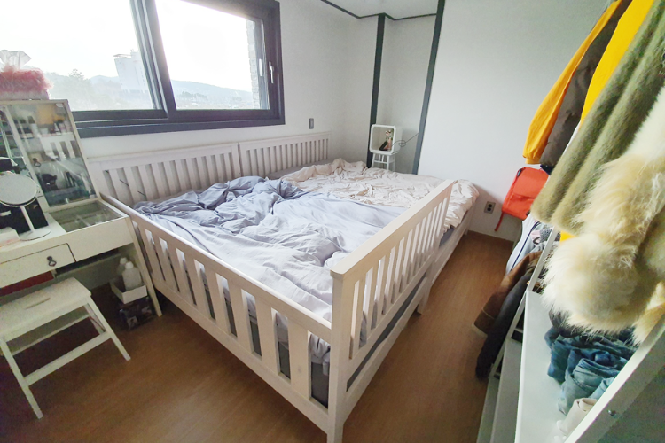드레스룸이 아예 침대를 가리고 있으니까.... 침대 정리를 하지 않아도 방이 더러워 보이지 않아요 ^^;