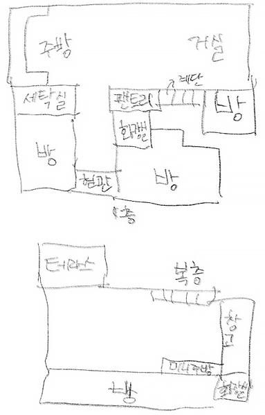 50평대 복층 상가주택에서 살고 있어요. 방 3, 화장실 2, 세탁실, 창고 주방 거실이 아래층에 있고, 복층은 작은방, 작은 화장실, 미니 주방, 거실, 테라스로 이루어져 있어요.