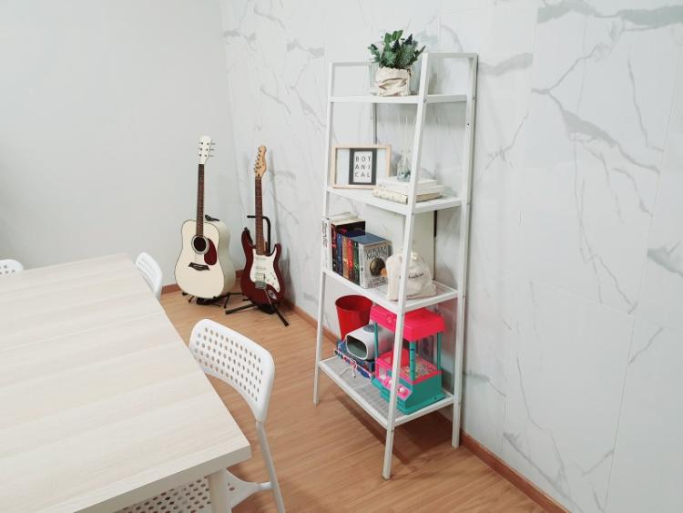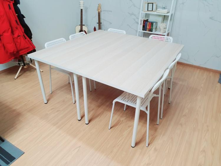 테이블 두 개를 붙이고 의자를 6개 놓은 이 공간. 딱히 노리고 한 것은 아닌데 끝나고 보니 뭔가 보드게임 카페 같다고 ㅋㅋ 혼자 그렇게 만족했네요. 뒤쪽에는 옷걸이를 뒀는데, 이것도 지저분해 보여서 치울까 봐요 ㅠ_ㅠ