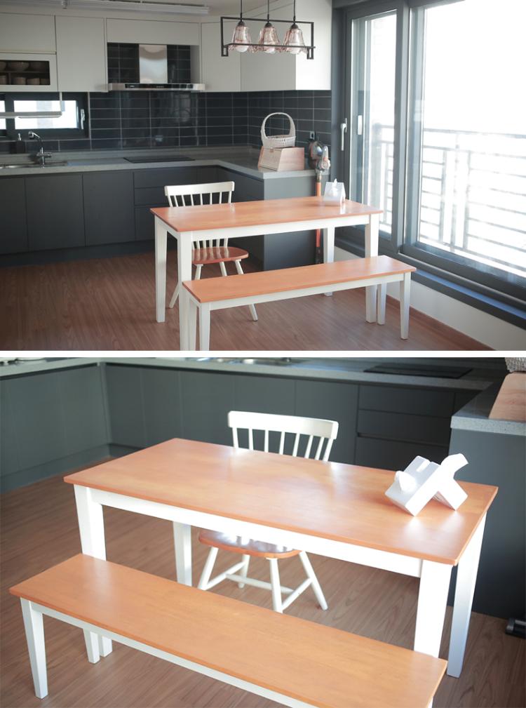 식탁은 리폼한 것. 페인트칠을 다시 했는데, 우드 스테인을 너무 여러 번 발랐는지 색이 진하네요. ㅎㅎ 혹시 몇 년 후 다시 리폼하게 되면 우드 스테인은 한 번만 발라야겠어요.