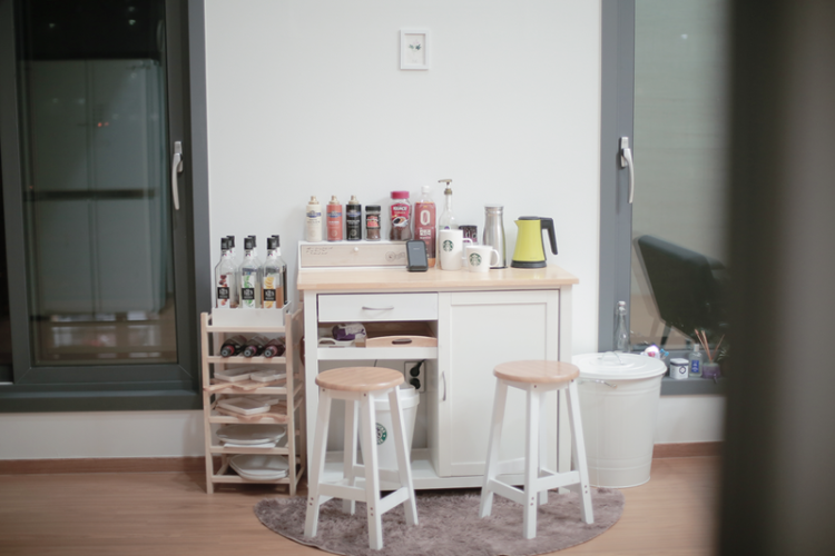 사람이 한 번 꺼내놓기 시작하면 계속 꺼내게 되더라고요. 집집마다 다르겠지만 보통 주방을 떠올리면... 도마가 꺼내져있고.... 자주 쓰는 식용유, 간장, 참기름 등이 꺼내져있고, 수저 통, 칼, 조리도구가 나와있는 경우도 있죠.