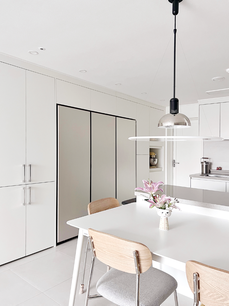 그리고 주방이에요. 주방 가전도 모두 화이트로 통일해서 밝은 느낌을 연출해 보았어요.